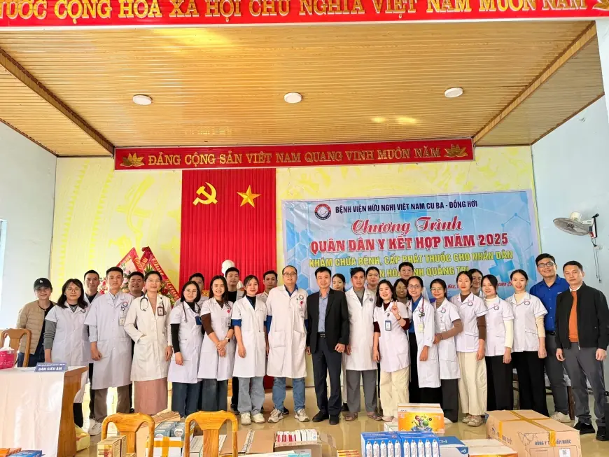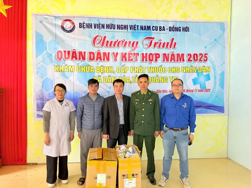 Ngày 28/11/2025, đoàn công tác của Bệnh viện Hữu nghị Việt Nam – Cu Ba Đồng Hới đã tổ chức hoạt động khám bệnh, tư vấn sức khỏe và cấp phát thuốc miễn phí cho bà con tại xã Dân Hoá, tỉnh Quảng Trị.