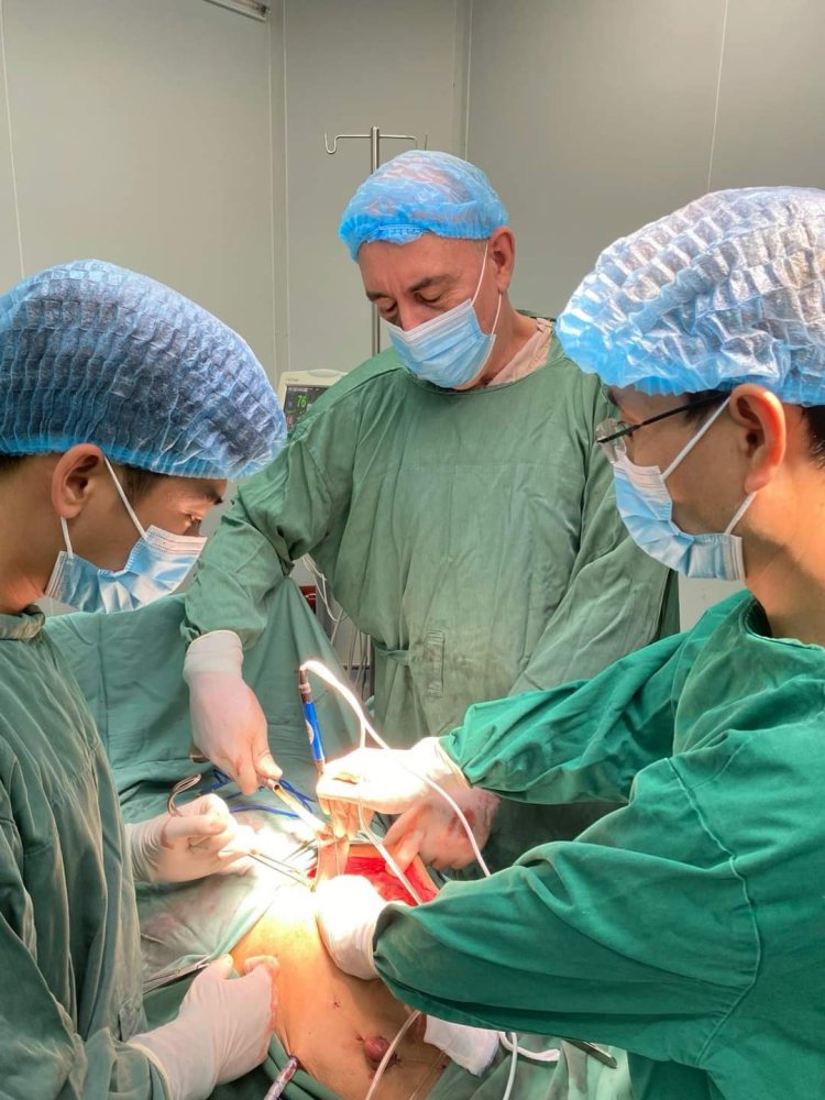 Chuyên gia ung thư người CuBa cùng các bác sĩ khoa Ngoại Tổng hợp trong một ca phẫu thuật đốt u gan bằng sóng cao tần cho người bệnh