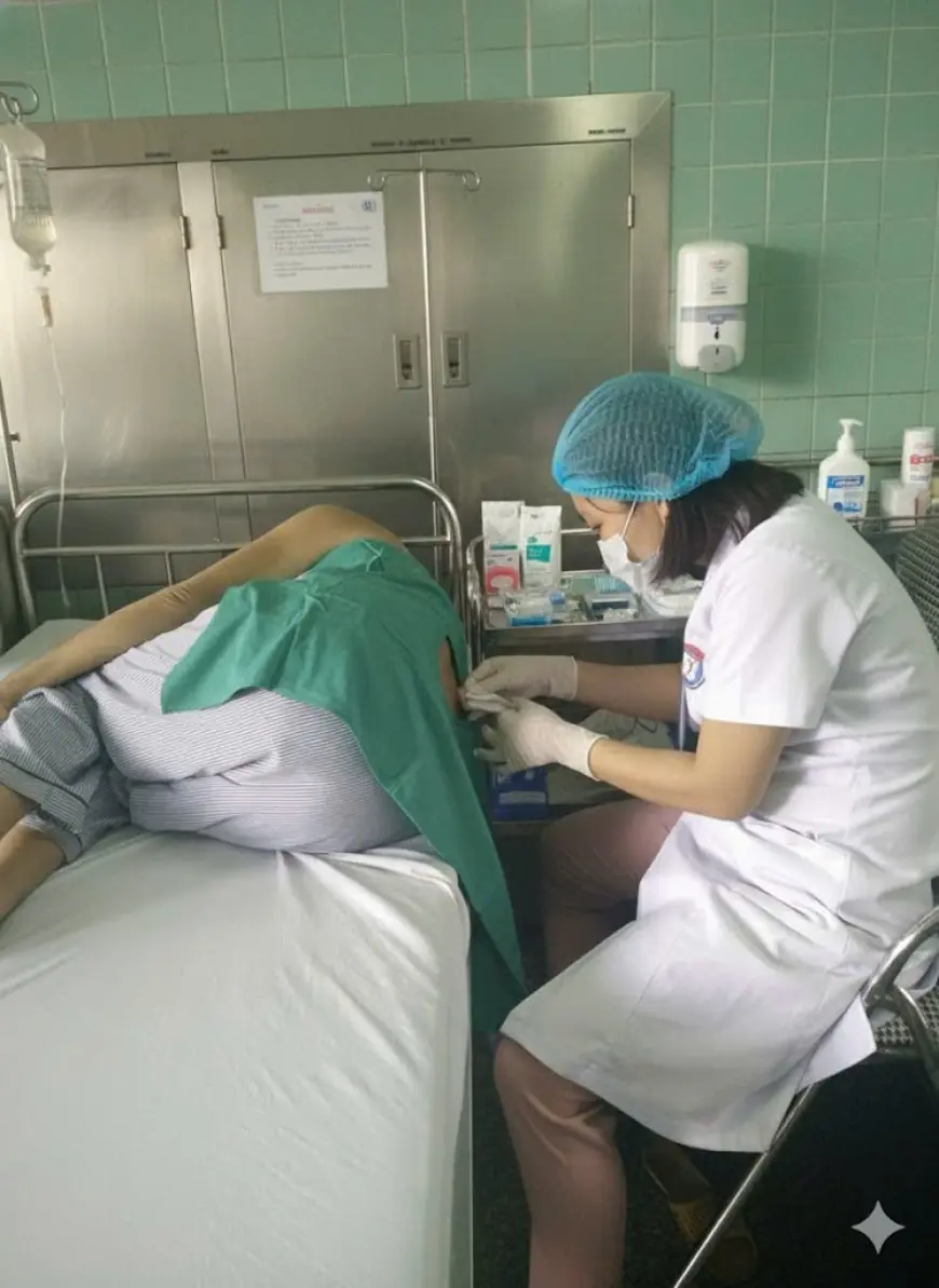 Hình ảnh bác sĩ đang làm thủ thuật chọc dịch não tủy. Một trong những thủ thuật quan trọng giúp chẩn đoán chính xác bênh Guillain Barre