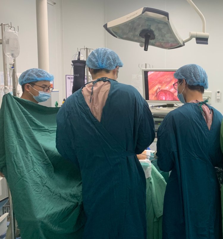 Ekip phẫu thuật cắt u trung thất cho nam bệnh nhân